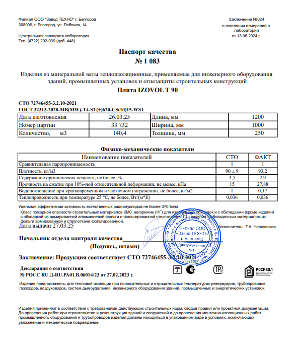 Паспорт на теплоизоляцию для дымоходов IZOVOL (pdf) — скачать