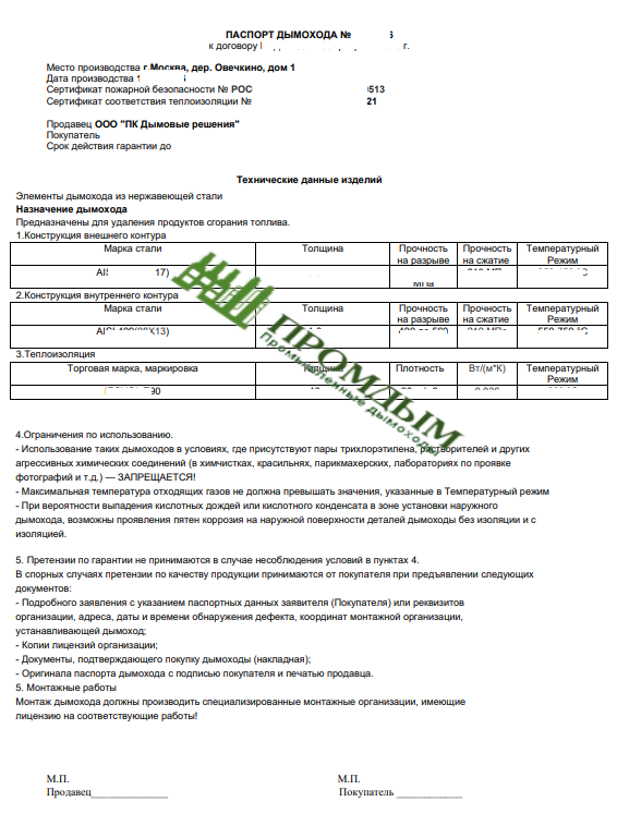 Образец паспорта на дымовую трубу